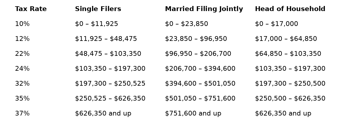2025 Federal Income Tax Brackets